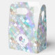 ¡Haz olas en tu celebración con temática de sirena con esta deslumbrante caja de favores de cumpleaños! Cubierta con un patrón de escala de sirena al estilo de las acuarelas en tonos violeta, verde azulado y verde marino, este diseño brillante añade un brillo mágico bajo el agua a cualquier regalo. La parte delantera incluye una etiqueta personalizado en forma de caparazón de almejas, perfecta para personalizar con el nombre de su hijo y los detalles de su cumpleaños. Ideal para regalos de cumpleaños, favores de fiesta o suministros temáticos a juego, este patrón da vida a la fantasía oceánica — ¡un chapoteo a la vez! Busque ID1144 para ver la coordinación de productos en este conjunto de diseños.