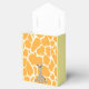 Un bonito diseño con una jirafa sentada sobre un fondo de un patrón de jirafa naranja.