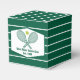 This classy modern country club small favor box features tennis rackets and a ball above your tennis team name and established date. Green and white striped boxes for your tennis players and country club members.