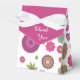 Personalizado snazzy abstract púrpura y flor verde patrón en cajas de favores con texto de "gracias" (opción para borrar texto o personalizar con el tuyo).