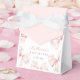 Elegant blush pink bow favor boxes with snowflake details perfect for baby showers in the winter time