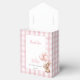 These charming 1st birthday party favor boxes feature a cute bunny holding balloons and a pink gingham background and thank you message under the lid. Designed by Thisisnotme©
