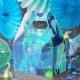 Múltiples tonos de azul, verde, azul violeta y blanco de diversas formas de opacidad se alinean para hacer una atractiva impresión abstracta.