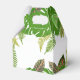 Un sencillo texto minimalista de hojas tropicales y de escritura negra "Mr & Mrs." que se puede personalizar según su apellido y fecha de boda. Una caja ideal para bodas con temática tropical.