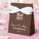 Trate a sus invitados con un favor simple pero elegante que atesorarán por siempre con la Caja de Favor Sr y Sra Elegante Simple | Marrón, personalizada con el nombre de su nueva familia y la fecha de su boda. ¡Dé a sus invitados un favor tan inolvidable como su boda con este recuerdo personalizado!