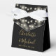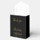 Elegante caja de favores de bodas en negro y oro con luces de cuerda de bonito, elegantes nombres de guión de firma y fecha especial establecida en tipografía moderna. Puedes personalizar con tu propio mensaje de agradecimiento debajo de la tapa. ¡Una forma perfecta de agradecerles a sus huéspedes! Diseñado por Thisisnotme©
