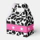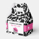 Celebra a las futuras novias con estas cajas de favores de fiesta de despedida de soltera con tema de vaquera disco. Presentan una divertida impresión de vaca en blanco y negro con una ilustración de una bola de discoteca que lleva un sombrero de vaquero rosa. El texto está listo para ser personalizado con tu propio mensaje.