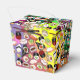 Caja de regalo personalizado decorada con círculos arcoiris y varias formas de sushi