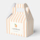 Cuidada temática "melocotón dulce", caja de ducha para bebés, con fondo a rayas de melocotón pastel y un guión de época.