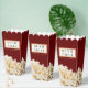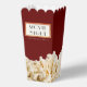 Casilla de palomitas de maíz de la familia roja oscura con el cartel de la marquesina del teatro. Personalízalo con tu propio texto.
