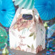 Muestre su agradecimiento a sus invitados bodas con esta hermosa caja de favores matrimoniales. Esta caja presenta un bonito diseño floral acuático en tonos marrones, beige y verde de terracota en la parte superior e inferior de ambos lados. Puedes personalizar la caja con los nombres de la pareja feliz. Esta caja es perfecta para llenarse de dulces, chocolates u otros dulces pequeños para tu boda de otoño.