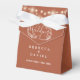 Una elegante caja de favores matrimoniales con luces de cuerdas de bonito y follaje floral dibujado a mano sobre un fondo de terracota. ¡Una forma perfecta de agradecerles a sus huéspedes! Diseñado por Thisisnotme©