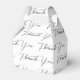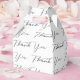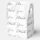 Letra de caligrafía THANK YOU elegante en negro sobre fondo blanco.