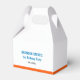 Fiesta de cumpleaños de Threenager gracias a favor de cajas para que los invitados celebren el tercer cumpleaños de un niño. Diseño moderno con colores naranja y azul para el fiesta de un niño.