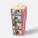 Destaca con estas cajas de palomitas de maíz con plantilla de foto de tira de película - Boda personalizada despojada. Genial para palomitas de maíz u otros snacks y golosinas. Estas cajas de Ricaso están diseñadas en un patrón tradicional a rayas rojas y blancas. Perfecto para una boda con tema de cine.