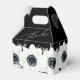 Las cajas de favores estilo Gable presentan elegantes flores de anemona blancas y negras y hojas en acuarela sobre un fondo negro y tus detalles en letra chic. Artículos COINCIDENTES en nuestra colección.
