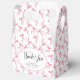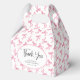 Cajas de regalo para la ducha de novia personalizadas con lazo rosa Coquette. Incluye un patrón de lazo rosa en todo. El texto "gracias" es parte de los elementos de diseño y se puede cambiar de tamaño o eliminar por completo. Personalice la plantilla con el título y la fecha de su evento. © Kimbellished, LLC