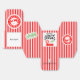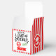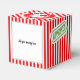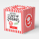 Agrega un toque divertido a tus regalos de vacaciones con esta caja de favor de Trozo de Carbón, que presenta un fondo de rayas de caramelo rojo atrevido, un "Sello de Aprobación" verde y un sello de "Entrega Express" rojo.