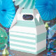 Caja Para Regalos Turquesa Claro y Blanco Rayado Horizontal Ancho