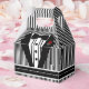 ¡La caja de favores perfecta! Esmoquin formal negro con corbata de arco negro. Camisa de botón blanco abajo. Fondo rayado blanco y negro. Bandas francesas en el asa. La parte trasera tiene espacio para tu mensaje personalizado personalizado. Perfecto para eventos formales, recaudación de fondos de corbata negra y bodas. Para ver productos a juego, por favor visite mi tienda "The Hungarican Princess" en www.zazzle.com/hungaricanprincess*. Mire en mi categoría de departamento "Black Tie Event" para ver la "Colección formal de Tuxedo de Neumático Negro".