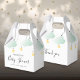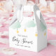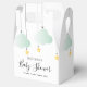 Caja de favores para baby shower de Twinkle twinkle little star con nubes verdes menta y estrellas doradas en hilos sobre un fondo blanco. Personaliza con los detalles de tu evento especial. Diseñado por Thisisnotme©