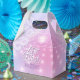 Diseño elegante y personalizado de caja de favor para despedida de soltera con colores gradientes hermosos desde lavanda hasta periwinkle y rosa con una bola de discoteca funky, fuente retro glamorosa y fondo de luces de discoteca brillantes. Este diseño sofisticado y elegante se adapta fácilmente a cualquier cena especial y/o evento de baile. Busque ID928 para ver otros productos en esta colección de moda.