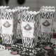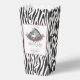Estas "Cajas de Favor de Palomitas de Maíz con Estampado de Cebra Un Poco Salvaje" presentan un audaz estampado de cebra en blanco y negro alrededor. En la parte delantera y trasera hay casillas de texto enmarcadas en rosa oscuro con una mamá cebra y su bebé dibujadas a mano con tinta negra detallada. Rosas malva y lilas con ramitas delicadas añaden un toque floral romántico y moderno para un ambiente chic de safari.