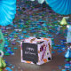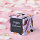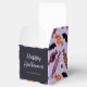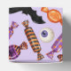 Un delicioso diseño de la caja Favor de Halloween de personalizable con ilustraciones de varios dulces de Halloween incluyendo gombas de béisbol, murciélagos de goma y caramelos duros a rayas rápidas en colores naranja, morado y negro. ¡Toda la edición se puede actualizar para crear tu propia caja de favores de Halloween!