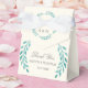 Hermosas viñas de hojas verde azuladas rodean las iniciales de la pareja boda en esta sencilla y encantadora caja de boda de marfil, que se agradece a los huéspedes de la recepción. Un elegante estribillo turquesa para una boda en la playa cerca del océano, combinando un motivo al aire libre con una tipografía elegante para una ceremonia de verano de bonito.