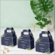 Esta elegante caja de bienvenida de bodas botánicas florales y verdes puede ser personalizada con su información en tipografía de moda sobre un fondo azul marino. Diseñado por Thisisnotme©