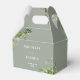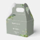 Esta elegante caja de favores botánicos de bodas florales de vegetación se puede personalizar con su información en tipografía de moda sobre un fondo verde sabio. Diseñado por Thisisnotme©