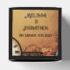 Un cálido telón de fondo de color naranja-marrón marca la tónica de este diseño de boda de vapor, con un reloj de vintage, artes y líneas marrones.. En el centro, una pareja victoriana, vestida con su mejor atuendo de steampunk