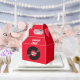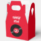 Send your guests home with this custom vinyl record favor box personalized with a name and age. At the party, whether displayed at each seat or on a favor table, these gable favor boxes make a vivid display. The bright red background for color pops and all the rockin' style of your rock and roll retro vinyl record theme birthday party. Such a cool way to say thank you to your guests and to add another nice visual to your birthday party theme and say thank you from the rock star guest of honor.