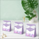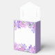 Elegante y simple caja de favores Bridal Shower con flor de geranio púrpura rosa y vibrante caligrafía de texto.