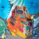 Audaces salpicaduras abstractas inspiradas en el graffiti en tonos neones y texturas que gotean; una declaración de arte urbano que da energía a la ropa con colores dinámicos y movimiento expresivo.