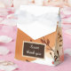 Añade un toque personal a tus favores de boda con las cajas favoritas de "Warm Peach Boho Florals". Diseñadas con melocotón suave y acentos florales tierra, estas cajas reflejan un estilo boho de moda perfecto para un boda de otoño. Creados con contenido generativo, ofrecen una solución de empaque única y elegante para su día especial.