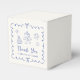 Pequeña ducha de bebé, de color crema clara, favorece las cajas con un moderno marco ondulado azul adornado con arcos, extravagantes ilustraciones de corazones, estrellas, decoración de pasteles y guarderías dibujados a mano, y "Gracias", exhibido en un divertido y lúdico guión azul.