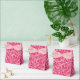 Caja de favores en un patrón vintage William Morris damasco de flores y hojas de cardo, en rosa fucsia profunda, en un fondo rosa pastel, realzado digitalmente y colorido