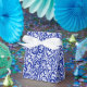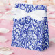 Caja de favores en un patrón vintage de damasco William Morris de flores y hojas de cardo, de color blanco sobre fondo azul cobalto, realzado digitalmente y colorido