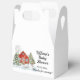 Una encantadora caja de Baby Shower con fondo de invierno festivo con abetos y una casa roja. Puede personalizar esto con sus propios detalles. Un bonito y encantador diseño invernal.