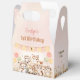 Cajas de favores de tamaño mediano para el primer cumpleaños o cualquier cumpleaños de una niña, con adorables chicas de animales boscosos de boho con flores, pastel, globos y pampas. Puedes elegir entre 3 tamaños de estas cajas de favores gables! Los suaves colores pastel, el beige clásico, el rosa, el amarillo, el verde claro y el marrón claro le dan un ambiente acogedor a finales de verano o principios de otoño. Personalice fácilmente el texto incluyendo el número en el bunting de la bandera :) - Kate Eden Art