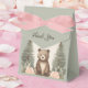 Este adorable diseño forestal de bosques cuenta con un bonito oso marrón rodeado de flores y árboles frondosos.