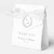 Estas preciosas gracias te dan la bienvenida a las cajas con una bella corona florida, romántica, botánica, verde salvia, las iniciales y nombres de la novia y del novio, así como la fecha de su boda, son perfectas para los favores en la recepción. Los tipos de letra son exquisitos y tradicionales. Es tan fácil hacer esto propio. Simplemente seleccione "Personalizar esta plantilla", escriba sus iniciales, primeros nombres y fecha de boda. ¡Es tan fácil!