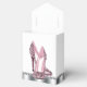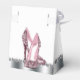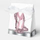 Bellas cajas de favores de la fiesta de zapatos altos de tacón negro y purpurina rosado. Estas elegantes cajas de purpurina rosado de tacones altos se pueden personalizar con texto y se puede cambiar el color de fondo y el color de arco.