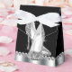 Cajas de regalo de zapatos de tacón alto con brillo negro y plateado. Estas cajas de regalo de zapatos de tacón alto con brillo negro y plateado pueden ser personalizadas con texto y puedes cambiar el color de fondo y el color del lazo.