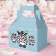 Caja de favores de partido mostrada en azul claro en un estilo gable con una linda cebra personalizado. Personalizar este elemento y agrega tu propio texto o compra tal cual y agrega alguna cinta de bonito.