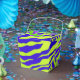 Diseño de rayas de cebra verde y violeta.