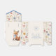 ¡Los dulces pequeños merecen casas acogedoras! Esta caja de favores está vestida con flores del bosque y cuenta con un pequeño zorro astuto que aprueba dulces, galletas o cualquier sorpresa de una ducha de bebé dulce.