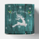 Pase regalos de vacaciones con esta caprichosa caja Verde azulada de Navidades Rústicos Favor de los Renos. El diseño de la caja de favoritos presenta un verde azulado fondo rústico de madera con un reno Navidad adornado con copos de nieve en caída. También hay artículos de regalo y de vacaciones disponibles con este diseño.