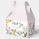 Cajas de favores de baby shower de safari de niña con adorables animales de bebé niña con flores rosadas en un bonito fondo de puntos rosas. Estas cajas de favores de baby shower de safari de niña se personalizan fácilmente con su texto.